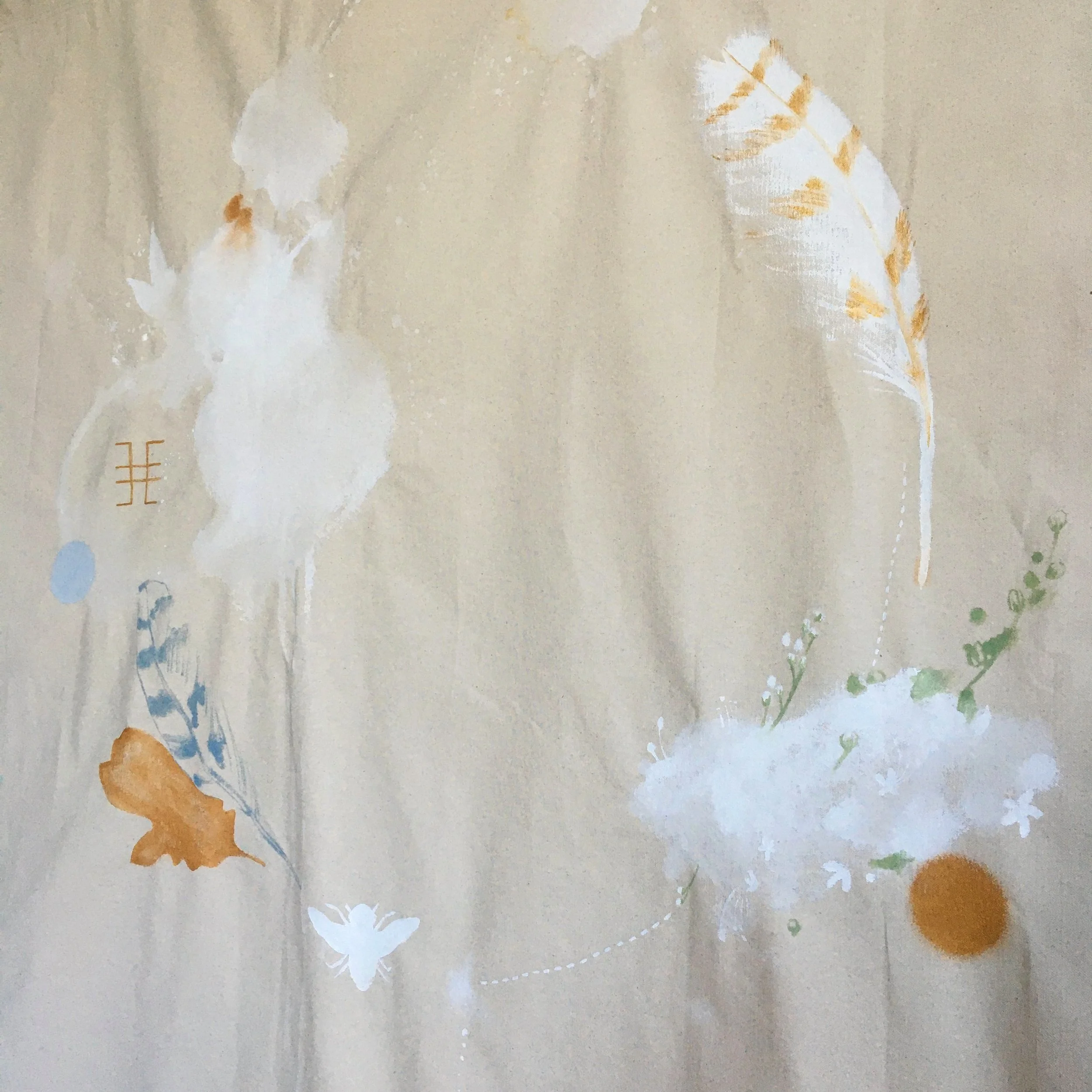 The Townhome painting (10+ feet wide) welcomes this couple into their new life on the coast, on traditional Lekwungen lands, and honours her Latvian ancestral roots, and passion for medicinal plant teachings, as well as his Métis roots.